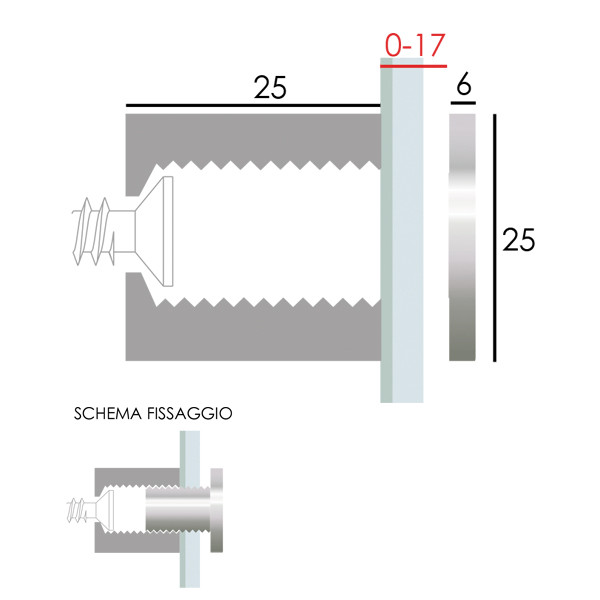 Spacer in satin silver aluminum used for fixing plates and / or panels to the wall.