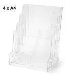 Brochure holder in transparent styrene with 4 pockets A4 format.