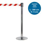 Colonnina Tendilinea lucida in acciaio silver e nastro rosso/bianco 3 metri