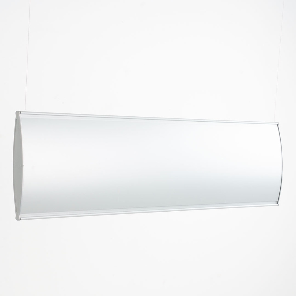 La plaque signalétique est constituée d’un profilé à double fond en aluminium peint en argent, ce qui confère stabilité et robustesse à la structure. La surface convexe ajoute non seulement un élément de design moderne, mais améliore également la visibilité du message contenu, le rendant facilement reconnaissable sous différents angles.