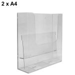 Porta depliant da parete in styrene trasparente a 2 tasche A4