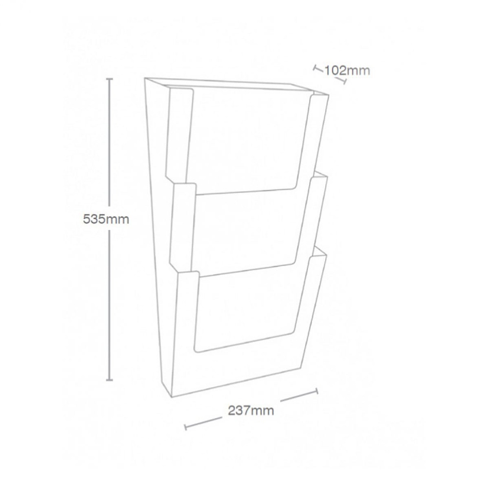 Porta depliant da parete in styrene trasparente a 3 tasche in linea formato A4.