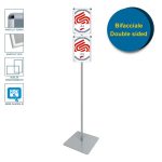 Le présentoir 2xA4 est une structure au sol qui fait partie de la gamme QUADRA SERIES. Entièrement réalisé en aluminium, il est composé d’un cadre à clipser pour impressions A4, d’un montant à section carrée (d’où la série tire son nom) et d’une base en métal thermolaqué argenté.