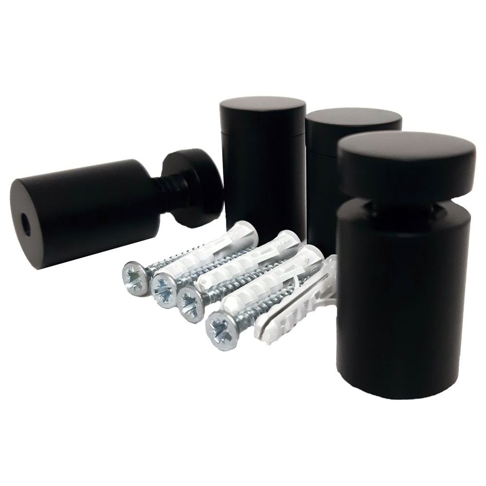 Distanziale in alluminio nero opaco utilizzato per il fissaggio a parete di targhe e/o pannelli.