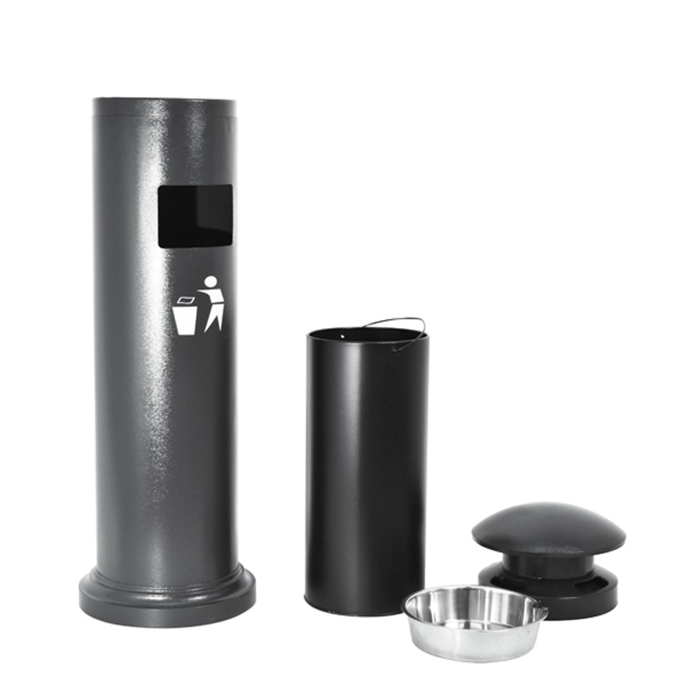 Cestino a colonna circolare con posacenere con cupola di copertura contro la pioggia – capacità 18 L