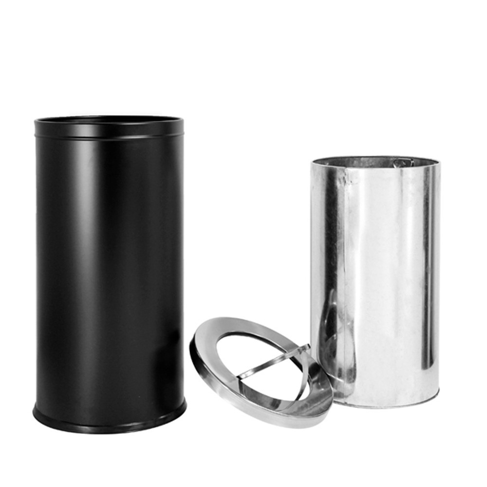 Cestino gettacarte dalla forma cilindrica utilizzabile sia all’interno che all’esterno.