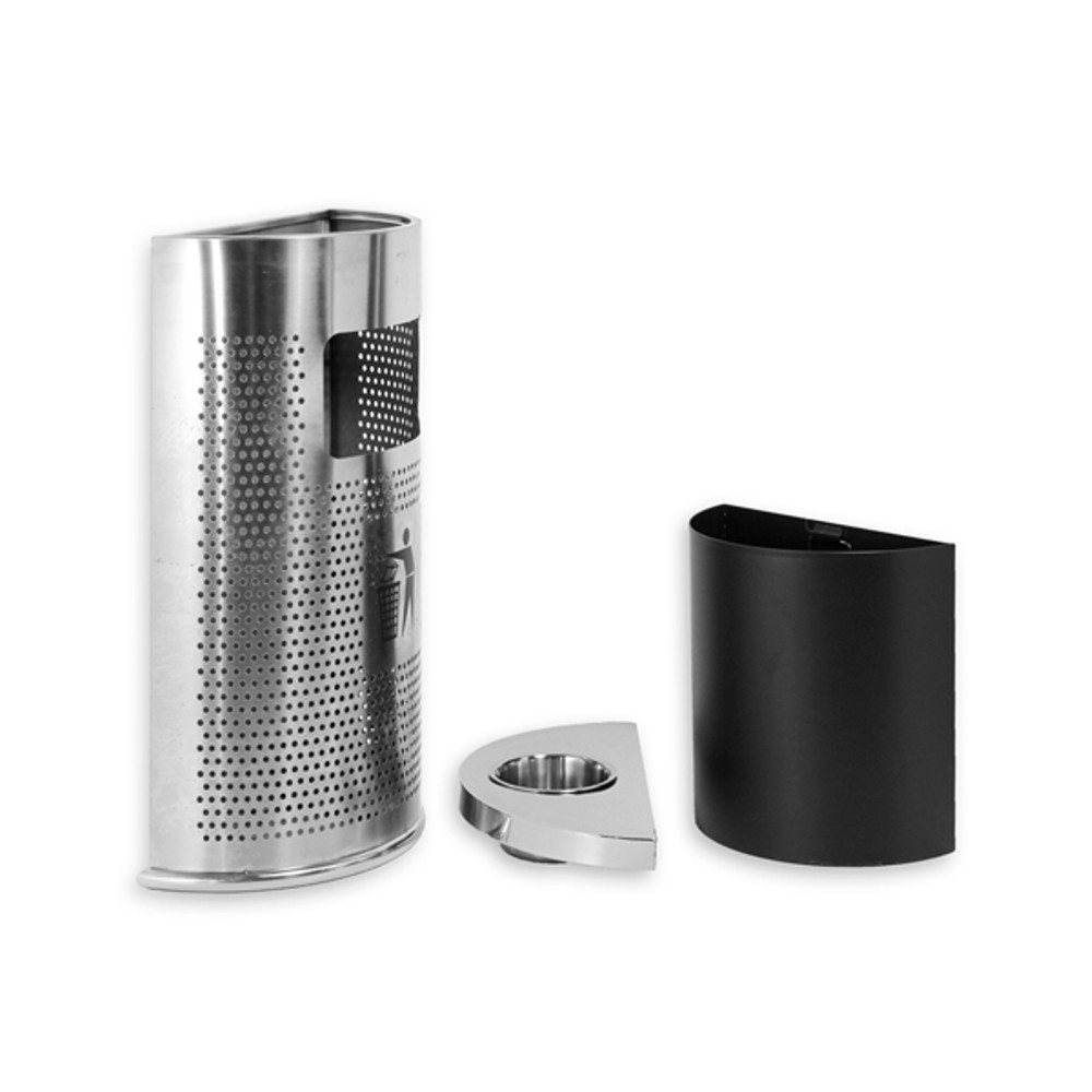 Posacenere semi circolare da parete con cestino