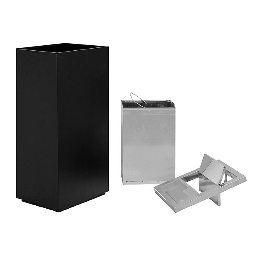 Cestino gettacarte e posacenere dalla forma rettangolare utilizzabile sia all’interno che all’esterno.