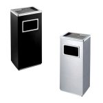 Cestino con coperchio superiore posacenere per mozziconi di sigaretta e foro per gettare i rifiuti. Disponibile nella colorazione silver o nera.