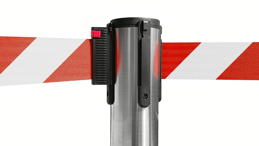 Colonnina segnapercorso nera con nastro avvolgibile di 3 metri color grigio.