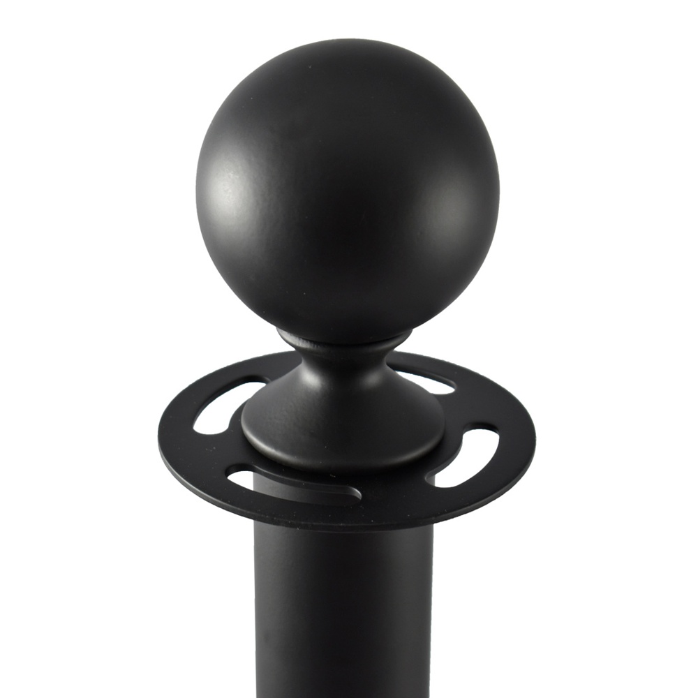 Colonnine con finitura nero opaco per cordoni intrecciati e in velluto. Disponibile in due modelli: con pomello finale e testa piatta.