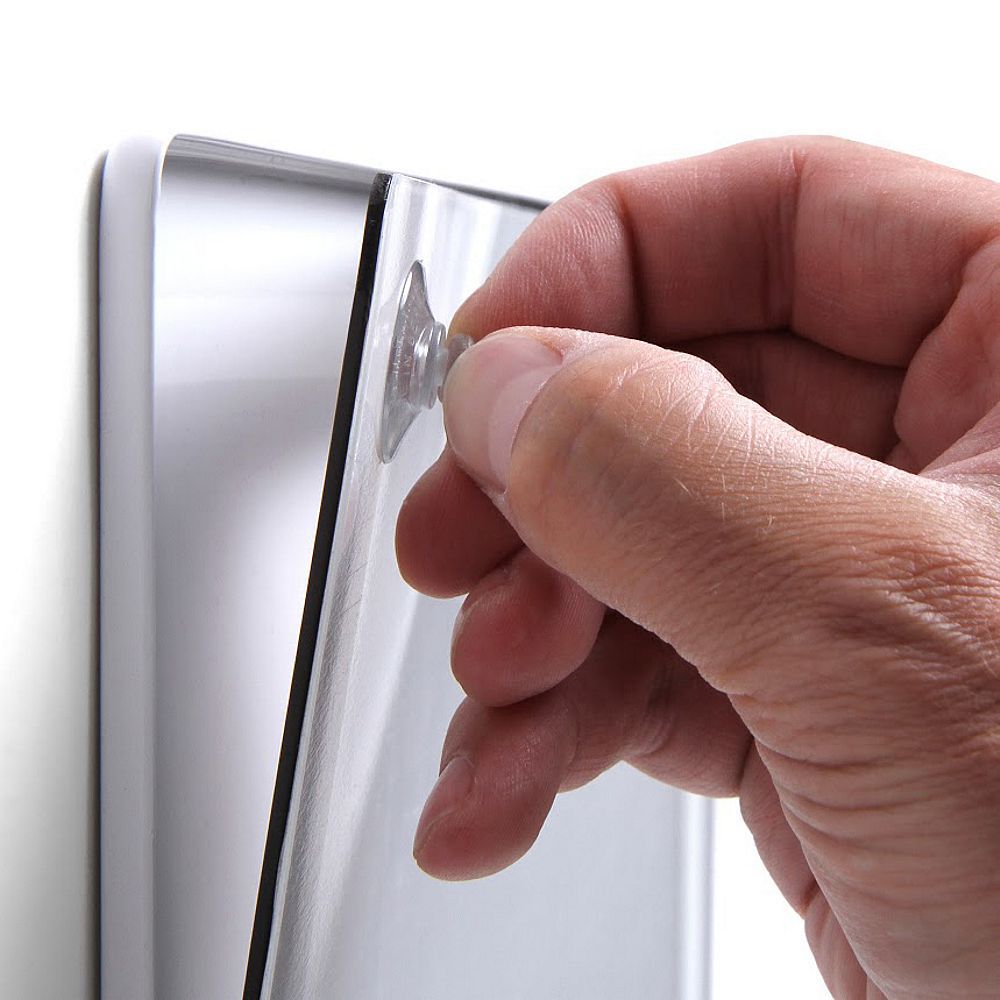 Facile intercambiabilità della comunicazione grazie alla speciale ventosa inclusa nella confezione.