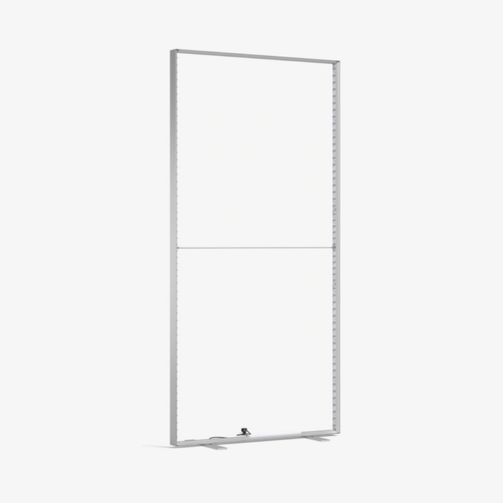 Espositore Lightbox Slim autoportante con tessuto retroilluminato: montaggio senza attrezzi