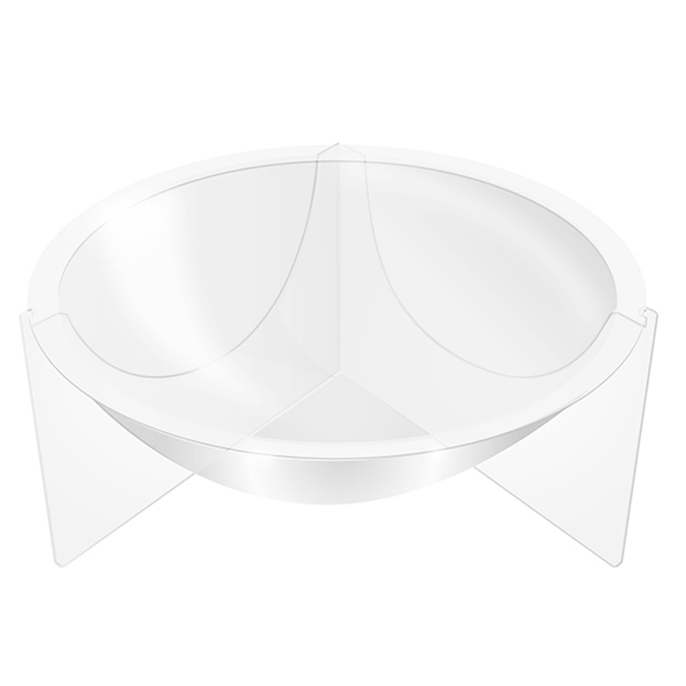 Mezza sfera in plexi trasparente (in cm.): H 13 – Ø 30 – spessore 3 mm.