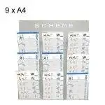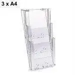 4 vaschette in plexiglass trasparente formato A4 con divisorio per poter contenere due file di depliant formato 1/3 di A4.