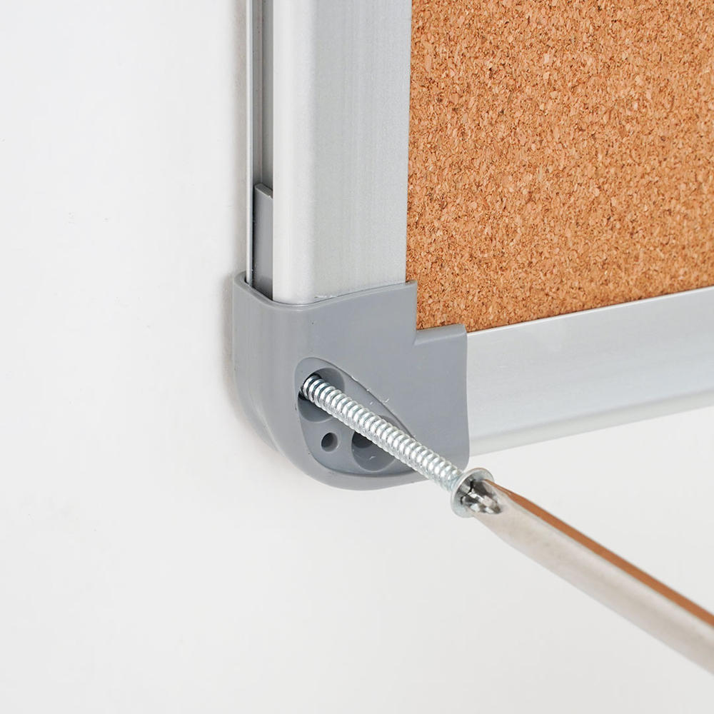 La lavagna in Sughero da parete presenta un design elegante e funzionale, realizzata con una robusta struttura in alluminio anodizzato silver. I suoi angoli sono dotati di protezioni in ABS, garanti della massima sicurezza e durata nel tempo. Questa lavagna è progettata per rispondere alle diverse esigenze di utilizzo, assicurando un’ottima versatilità.