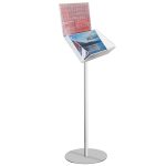 Espositore a leggio in plexiglass trasparente munito di comodo ripiano reggi libro formato A3.