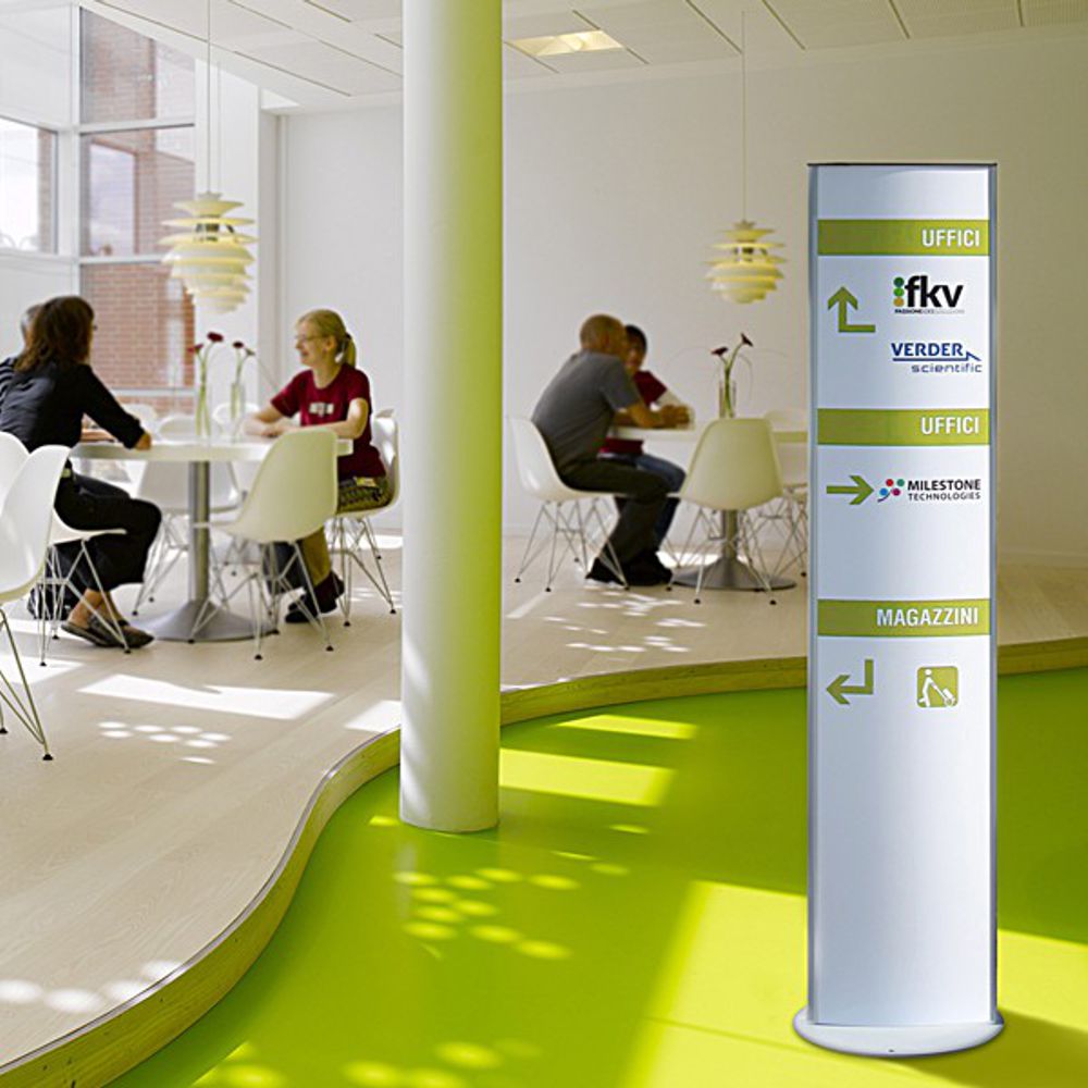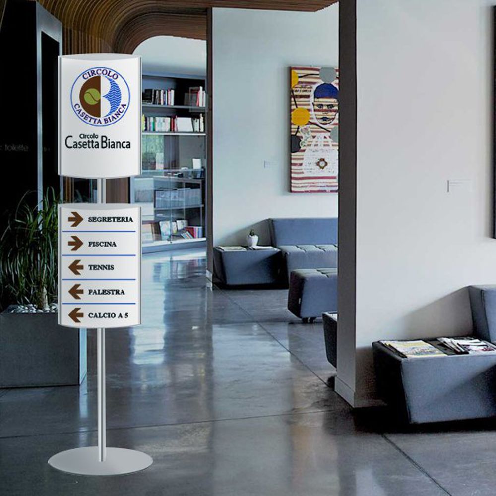 Indicato per esporre messaggi di promozione o anche semplicemente messaggi per indicare la direzione da seguire per raggiungere uffici e piani desiderati, il mini totem può essere utilizzato in locali come showroom, supermercati, sale meeting, sale convegni, ingressi di aziende e in qualsiasi posto dove si ha la necessità di esporre il proprio messaggio.