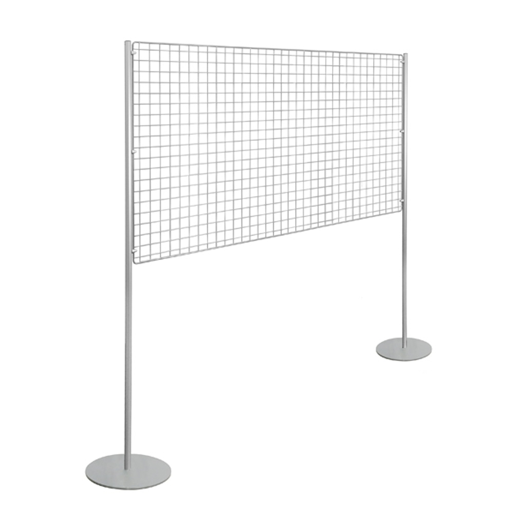 Pannello espositivo autoportante con griglia metallica e piedini fissi. Ideale per mostre, fiere e gallerie.