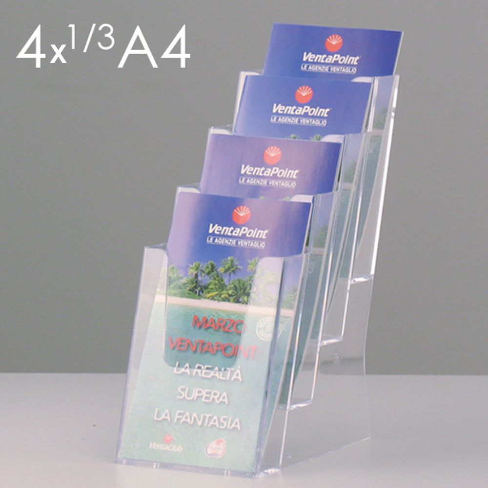 Questo espositore è particolarmente indicato per attività commerciali, uffici pubblici e eventi di marketing. La sua capacità di esporre stampati A4 in modo ordinato ed accessibile lo rende un alleato prezioso per chi desidera promuovere i propri prodotti o servizi in maniera professionale e visibile.