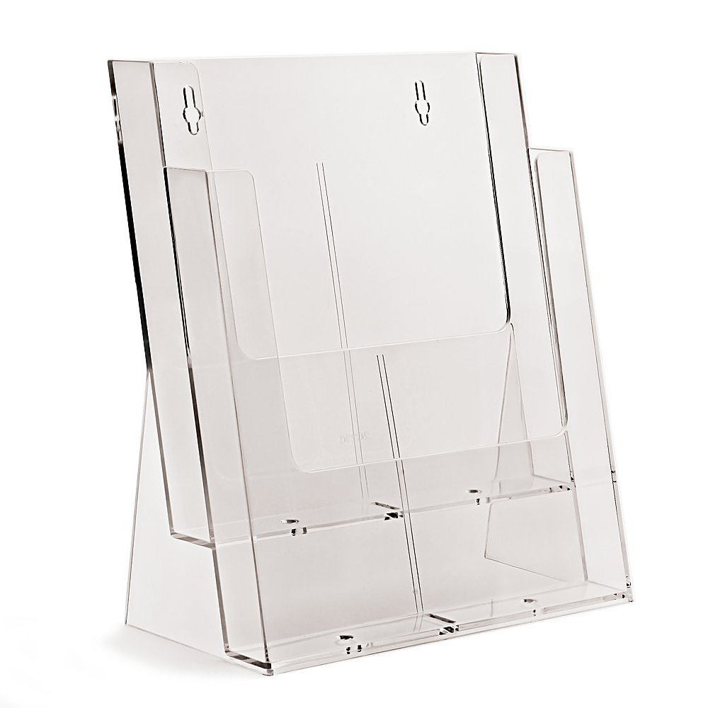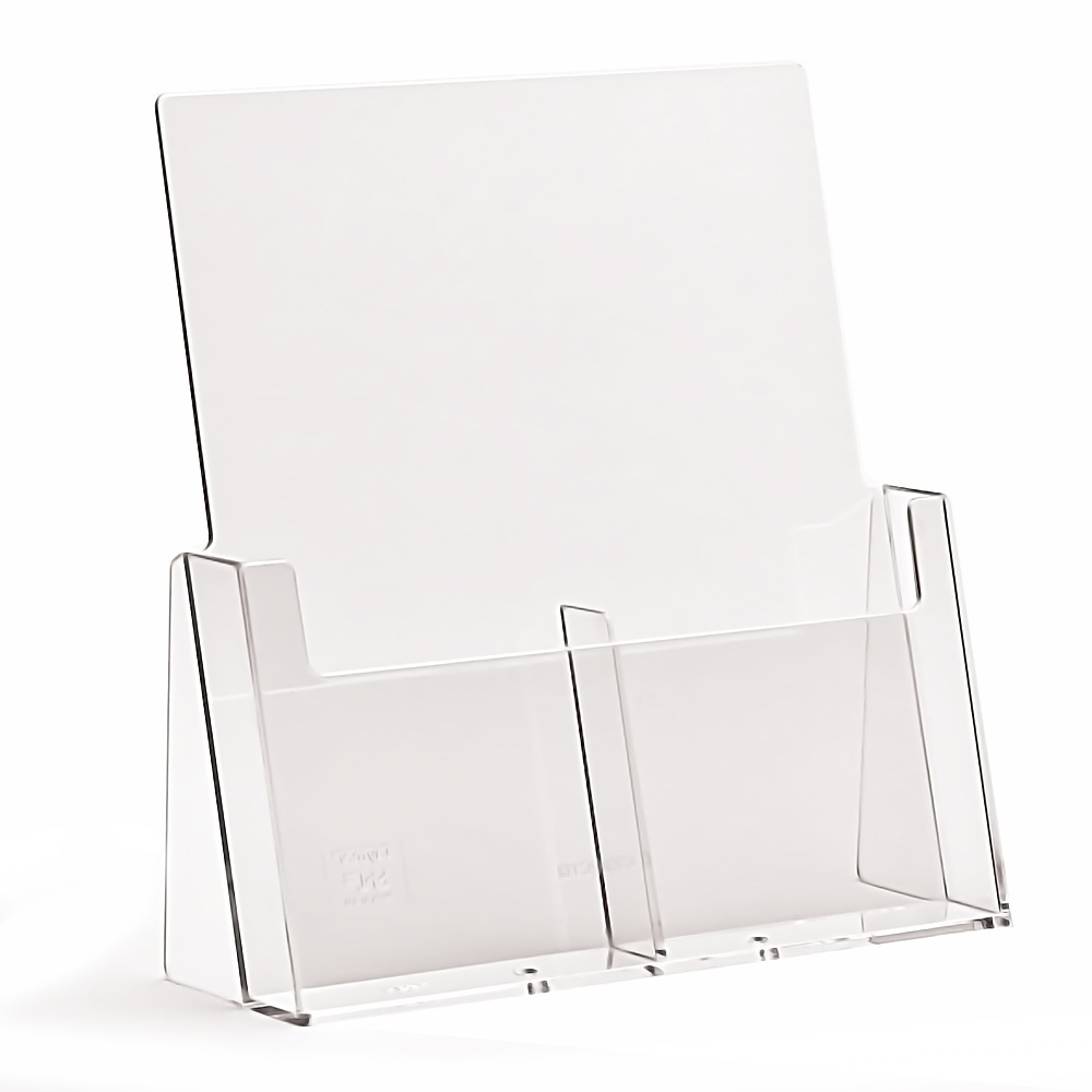 Questo espositore è particolarmente indicato per attività commerciali, uffici pubblici e eventi di marketing. La sua capacità di esporre stampati A5 in modo ordinato ed accessibile lo rende un alleato prezioso per chi desidera promuovere i propri prodotti o servizi in maniera professionale e visibile.