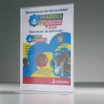 Espositore con base a T formato A5 verticale.