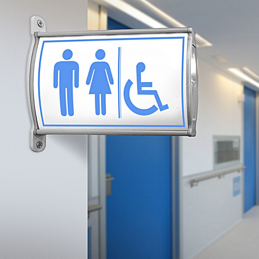 Targhe a parete bifacciale con aggancio a bandiera per utilizzo interno.