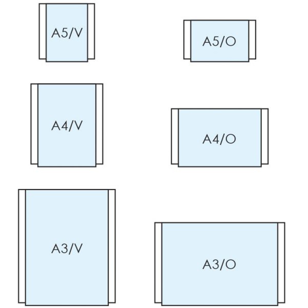 | Dimensione | A3 – 30×42 vert., A3 – 42×30 orizz., A4 – 21×29.7 vert., A4 – 29.7×21 orizz., A5 – 21×15 orizz., A5 -15×21 vert. |