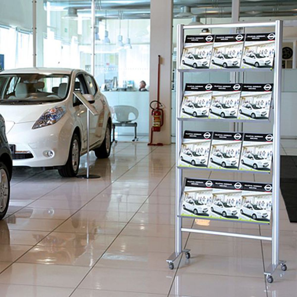 Formato: A4 con divisorio (21×29.7 cm.) per poter ottenere due file di porta depliant formato 1/3 di A4