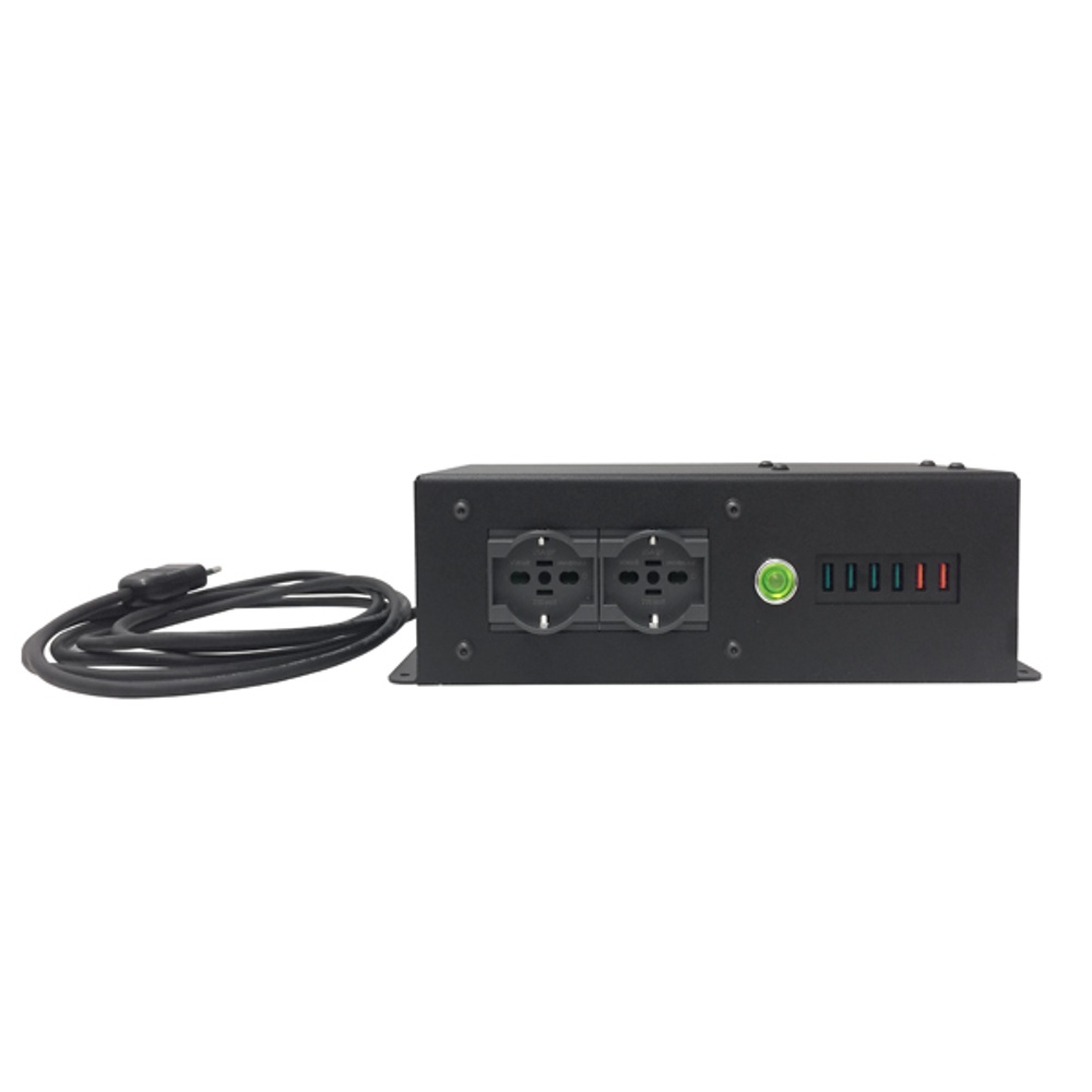 Munito in un ripiano di appoggio in MDF nero e un kit di ricarica dispositivi elettronici comprensivo di: