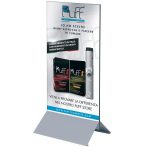 Il totem bifacciale 90×200 da interno è un espositore autoportante dal forte impatto visivo. E’ costituito da profili laterali in alluminio, una struttura interna di rinforzo, una base in metallo verniciato a polveri silver munita di fori per fissaggio a terra e due pannelli di fondo in forex