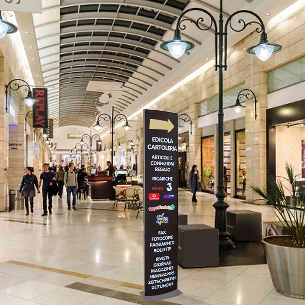 Indicato per esporre messaggi di promozione o anche semplicemente messaggi per indicare la direzione da seguire per raggiungere uffici e piani desiderati, il Totem Thin può essere utilizzato in locali come showroom, supermercati, sale meeting, sale convegni, ingressi di aziende e in qualsiasi posto dove si ha la necessità di esporre il proprio messaggio.