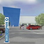 Totem da esterno bifacciale con impianto di illuminazione.
