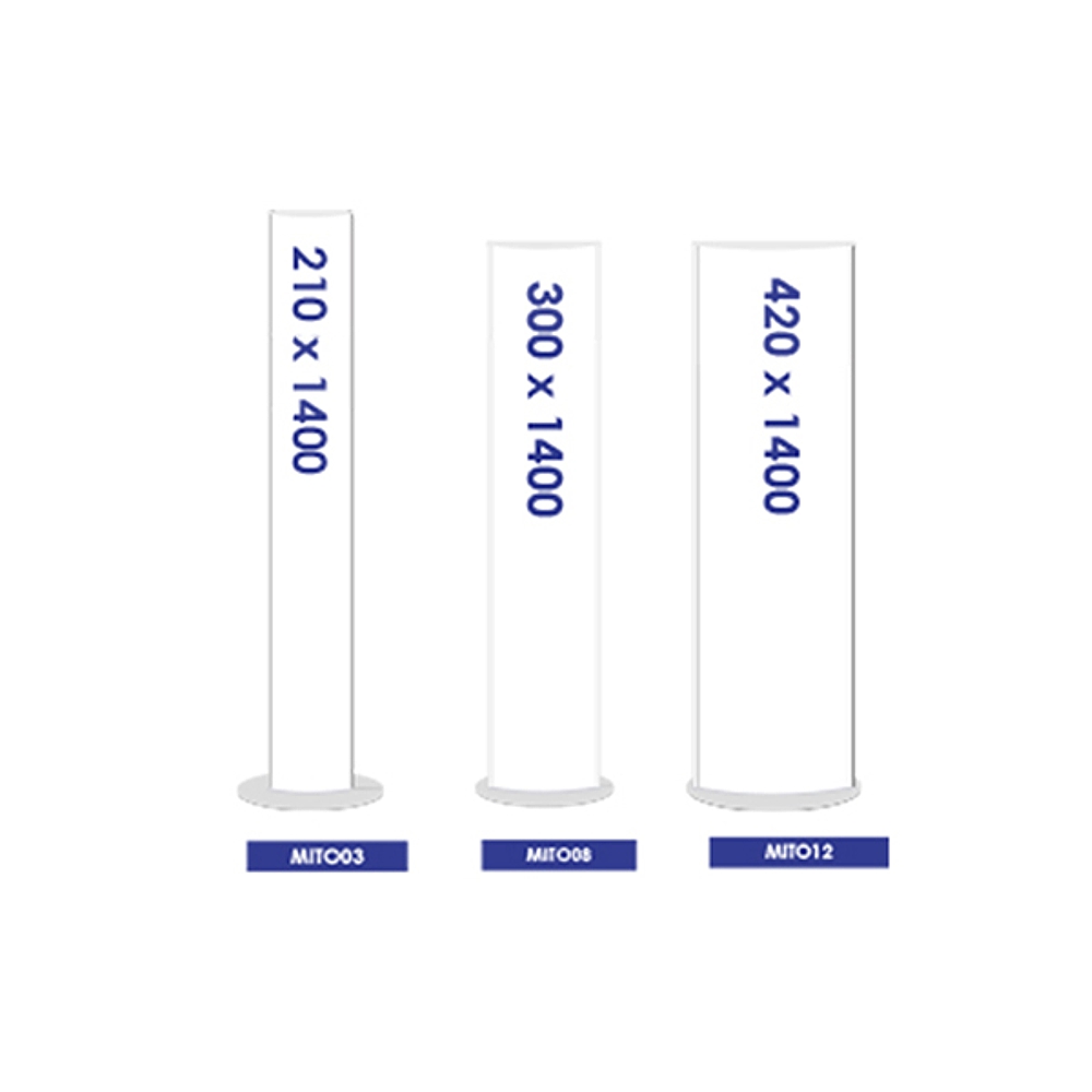 Dimensioni area personalizzabile (in cm.): L 95 – H 250 per il totem alto 280 cm.