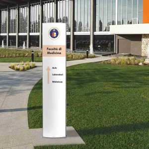 I totem pubblicitari per esterno sono colonne stampabili che si appoggiano a terra, disponibili in varie forme e dimensioni. Sicuramente ti sarà capitato di vederne qualcuno, vengono utilizzati per indicare un percorso, spiegare in che modo è divisa una struttura, illustrare un prodotto o un servizio.